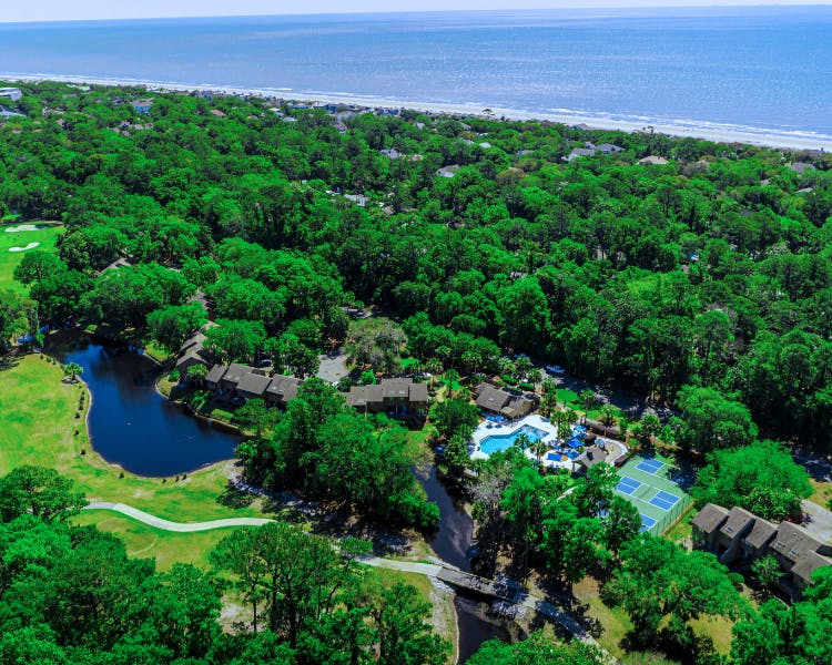 The Village at Palmetto Dunes offers a variety of studios, one- to three-bedroom villas, and townhomes in the heart of Hilton Head Island's award-winning Palmetto Dunes Oceanfront Resort. Located between the Robert Trent Jones Golf Center and the Palmetto Dunes Tennis & Pickleball Center, it's an ideal spot for those seeking a convenient and relaxing stay.